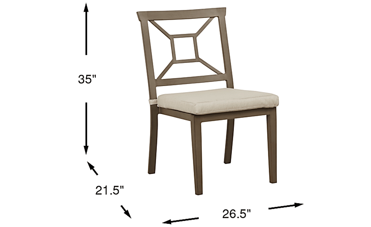 Patio dining is comfortable and stylish with the Waterfront side chair. For low maintenance this attractive outdoor chair is made from all-welded rustproof aluminum in a bronze finish. Cozy seating is provided by a removable cushion covered with durable solution-dyed outdoor fabric in a neutral linen color.