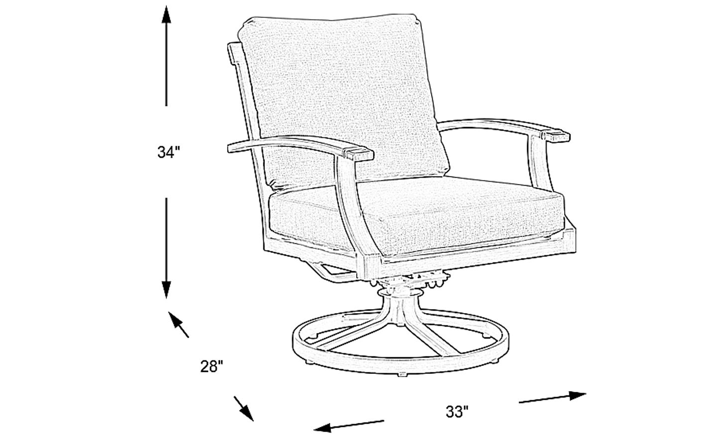 The Waterfront swivel rocker chair is the perfect spot for enjoying sunny afternoons and cool evenings. This outdoor chair is made from long lasting all-welded rustproof aluminum in a bronze finish. Cozy seating is provided by removable cushions covered with durable solution-dyed outdoor fabric in a neutral linen color. The back features a decorative square motif while the base provides swivel and rocking motion for full relaxation.