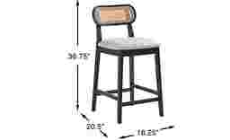 This stool is designed for both style and ergonomic comfort. The oval back features a woven rattan panel that provides breathable support, while the seat is fully upholstered in fabric to offer a cushioned surface for meals or working from home. Additionally, the frame includes a built-in footrest, which is essential for maintaining a natural and comfortable posture while seated at counter height.