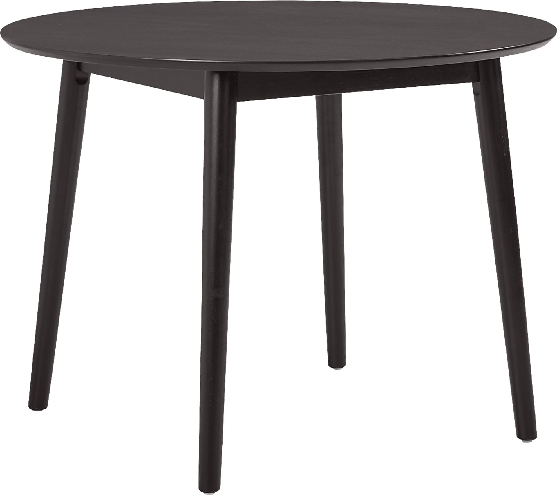 With an inviting, cheerful style that brings great times and wide smiles, the Watertown dining table sets the tone for the joy of meals shared. Okoume wood veneers in a black finish are shaped into organic curves in a contemporary take on midcentury-inspired design. A set of turned, slightly canted legs hold up the 39" round tabletop.