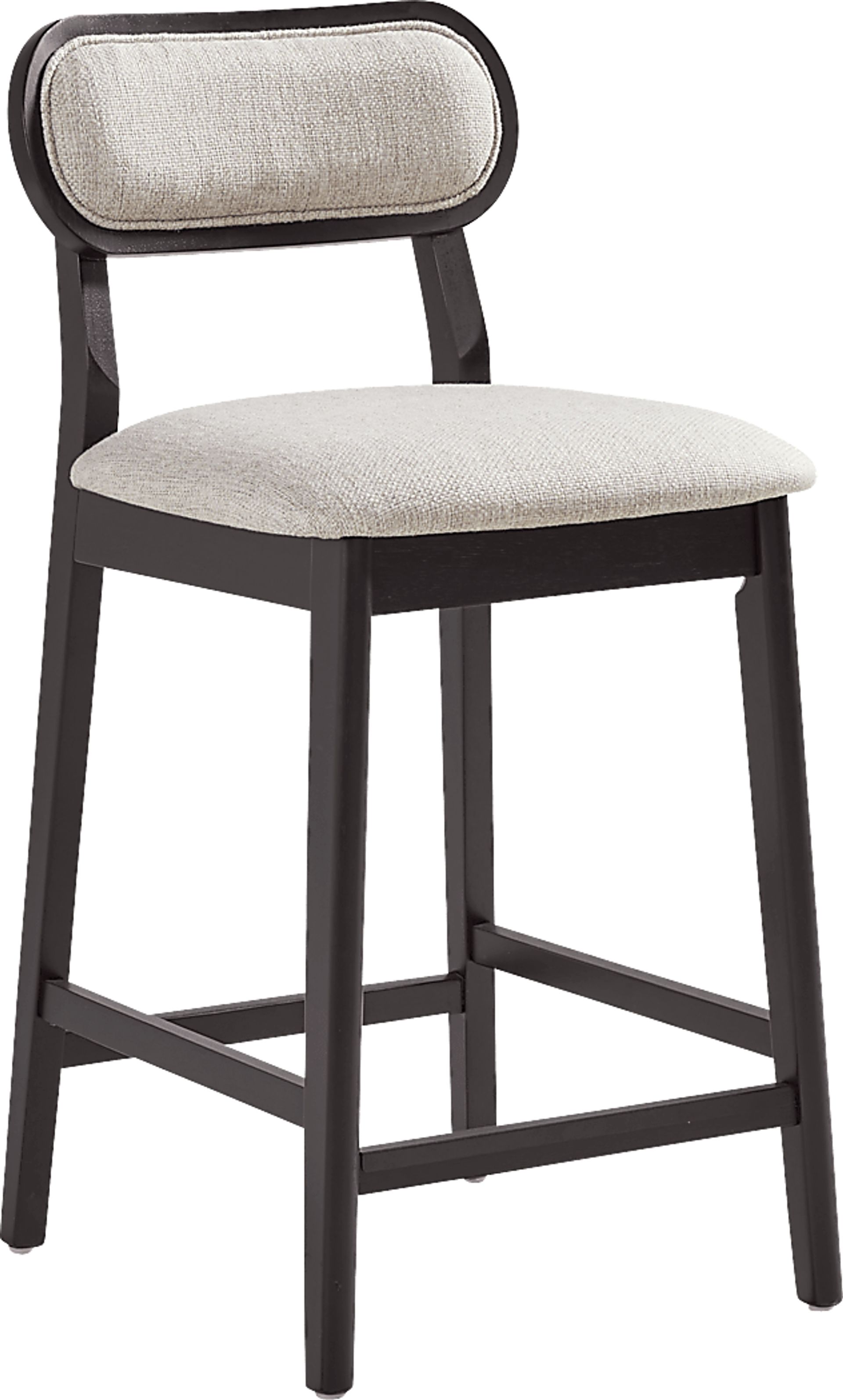 With an inviting, cheerful style that brings great times and wide smiles, the counter height Watertown dining chair sets the tone for the joy of meals shared. Okoume wood veneers in a black finish are shaped into organic curves in a contemporary take on midcentury-inspired design. The seat cushion is upholstered in beige, with a matching cushion welted to the oval back. Details like angled back posts and a protected footrest add unique flair to this collection.