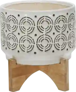 To maintain the "Wattford" planter’s bold tribal aesthetic, our care guidelines recommend regular dusting with a soft, dry cloth. For a deeper clean, use a damp sponge with mild soap and water. Avoid using abrasive cleaners or harsh chemicals, as these can strip the hand-painted finish and dull the ivory color over time.