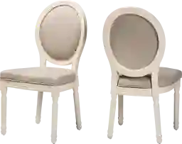 Craft a charming dining room atmosphere with the old-world inspired design of the Wauchope white side chair, set of 2. This chair is comprised of a study wood frame padded with plush layers of foam and upholstered in smooth fabric. With a rounded backrest, this chair is adorned with a vintage nail head trim as well as molded accents that convey a classic, antique-like feel. The Wauchope features turned legs that lends an elegant outline while providing the chair with excellent stability and support. A remarkable piece that encapsulates old-fashioned glamour, the Wauchope elevates any occasion. Customer assembly is required.
