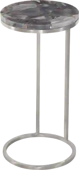 The Waumbeck gray accent table is perfectly scaled for a chairside table to display flowers and hold drinks. This contemporary accent table features a gray agate stone top and brushed nickel finished steel base.