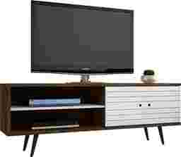 The Wavefruit brown console is a high quality, beautifully crafted, functional unit. Featuring two open shelves, and one large, concealed compartment perfect for stashing DVDs, board games, electronics, and media accessories, this console is the ultimate gathering place and will create a statement in any space. Artful grooves mix well with any decor and splayed wooden legs add character and ease for moving. Customer assembly is required.