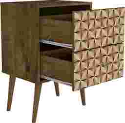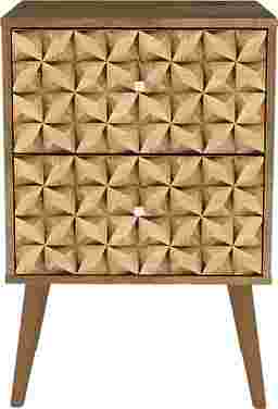 The Wavefruit brown nightstand is where modern functionality meets quality craftsmanship and smart design. Cool metal handles protect a pair of drawers and a base top perfect for showcasing books, magazines, or candles. As an end table or as a nightstand, the piece serves dual purposes and blends well in any space. Customer assembly is required.