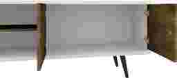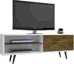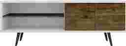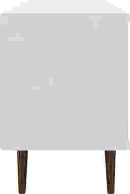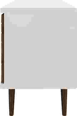 The Wavefruit white console is a high quality, beautifully crafted, functional unit. Featuring two open shelves, and one large, concealed compartment perfect for stashing DVDs, board games, electronics, and media accessories, this console is the ultimate gathering place and will create a statement in any space. Artful grooves mix well with any decor and splayed wooden legs add character and ease for moving. Customer assembly is required.