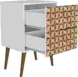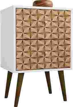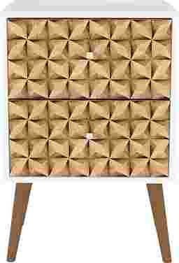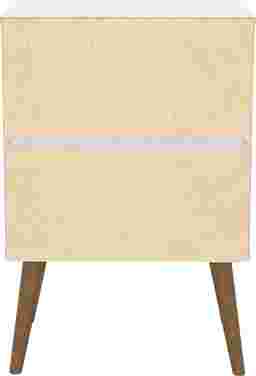 The Wavefruit white nightstand is where modern functionality meets quality craftsmanship and smart design. Cool metal handles protect a pair of drawers and a base top perfect for showcasing books, magazines, or candles. As an end table or as a nightstand, the piece serves dual purposes and blends well in any space. Customer assembly is required.