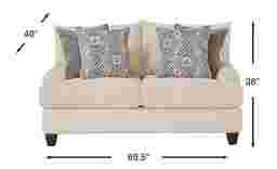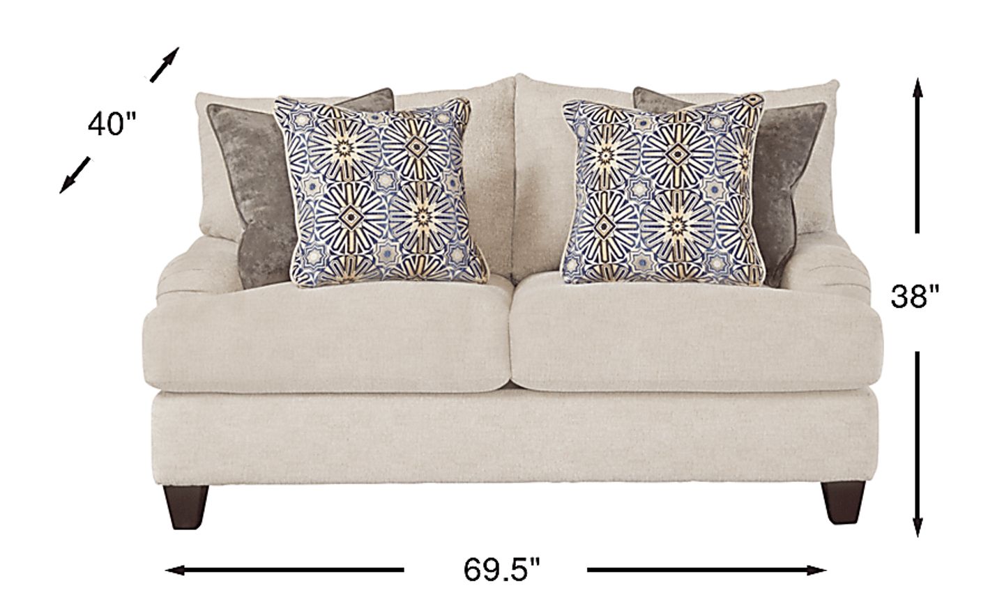 Deep, padded seating makes the Waverly Park loveseat the perfect seat for one or two. Upholstered in neutral beige colored chenille upholstery, the clean lines and cozy feel make it an exceptional choice for your home. Reversible cushions, low-profile Charles of London arms, and sleek brown legs create an elegant silhouette. Coordinating jacquard accent pillows in complementing shades add an attractive pop of color and texture. 100% polyester chenille