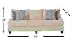 Spacious and comfortable, the Waverly Park sofa is a decorator-friendly choice with an appealing transitional design. Deep seating provides maximum comfort, while the neutral beige colored chenille upholstery is exceptionally versatile. Built in America, reversible padded cushions, low-profile Charles of London arms, and sleek brown legs ensure that it's not only a comfortable piece, but a beautiful one, too. Coordinating jacquard accent pillows in complementing shades add an attractive pop of color and texture. 100% polyester chenille