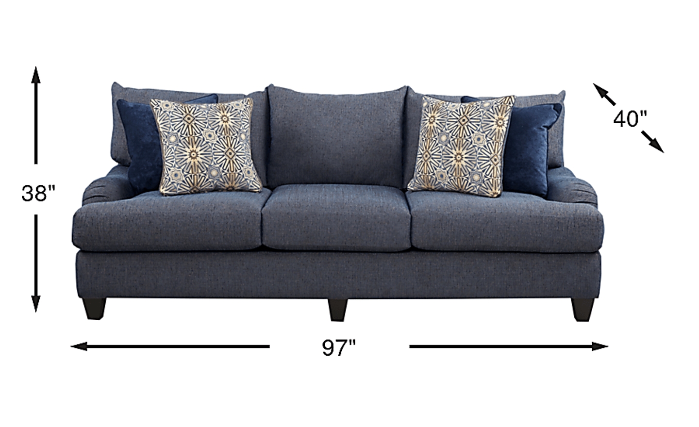 Spacious and comfortable, the Waverly Park sleeper sofa is a decorator-friendly choice with an appealing transitional design. Deep seating provides maximum comfort, while the chic blue colored chenille upholstery is exceptionally versatile. Built in America, reversible padded cushions, low-profile Charles of London arms, and sleek brown legs ensure that it's not only a comfortable piece, but a beautiful one, too. Have an overnight guest? Simply unfold the Royale innerspring mattress, and they'll experience a mattress with the perfect balance of support and pressure point relief. Coordinating starburst-patterned accent pillows in complementing shades add an attractive pop of color and texture. 100% polyester chenille