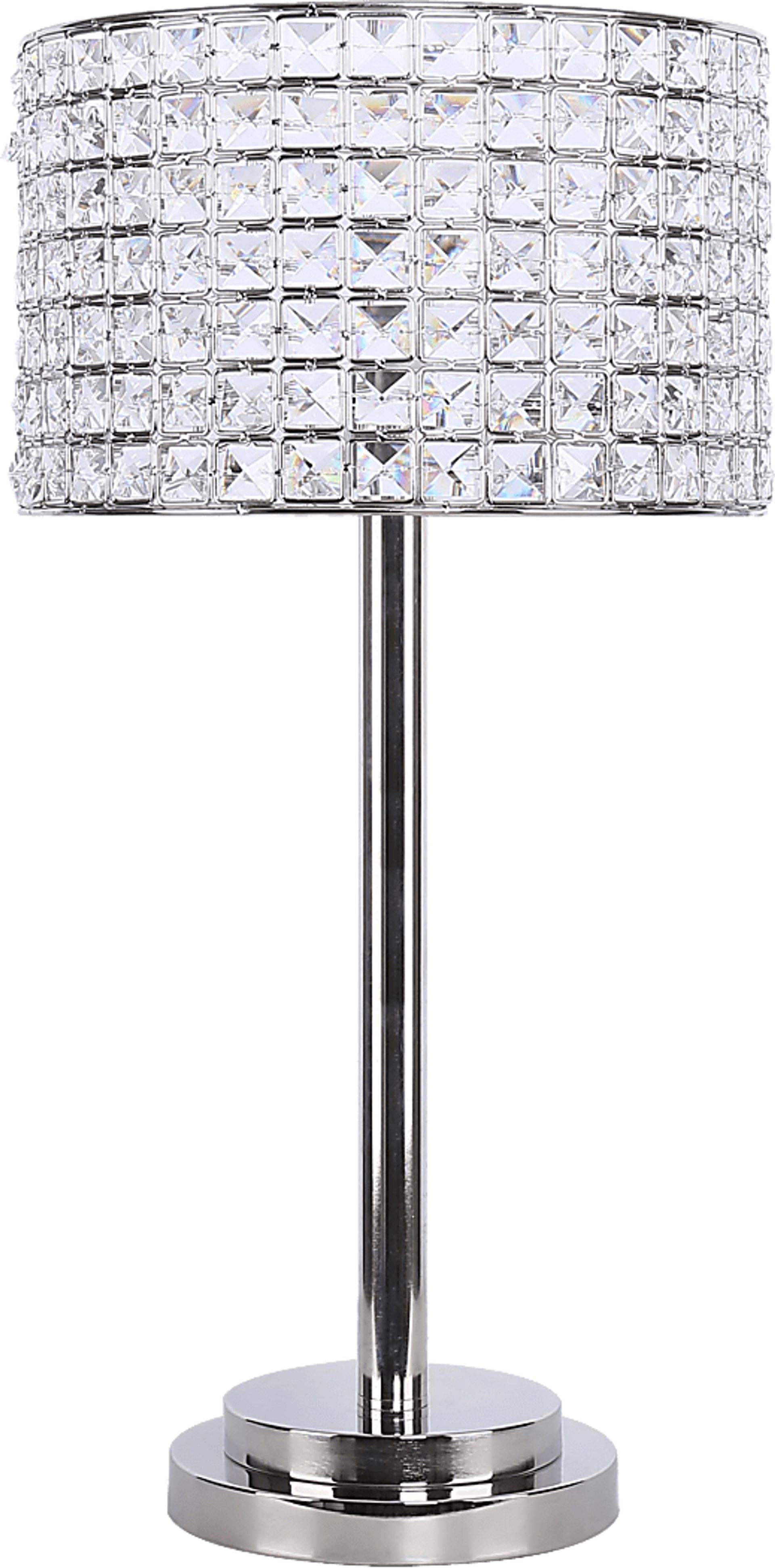 The Waverly Shade lamp brings stunning looks to your living or work space. A metal base in a nickel finish is complemented by a beautiful lamp shade that features a 360-degree diamond-like design for a unique appeal you'll love. Operated by an on/off rocker switch, this lamp has a 100-watt bulb capacity.
