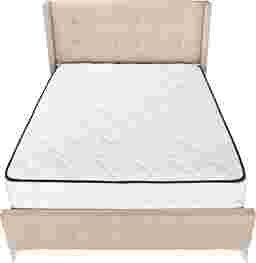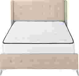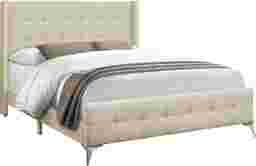 Create a refined sanctuary in your bedroom starting with the Waveworth beige queen bed. This queen-sized bed frame is covered in a neutral beige linen-look fabric over foam cushioning on all sides, with elegant button tufting on both the curved headboard and footboard for a full luxurious appeal. The support legs are covered with the same gray linen inspired material for an attractive finish, and the curved chrome metal feet at the footboard gives the whole bed that hint of modernity and glam. A standard queen size box spring and mattress is required but not included. All parts and assembly instructions are included inside the zippered compartment on the back of the headboard. Customer assembly is required.