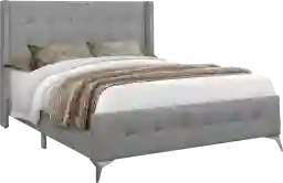 This bed is built with a sturdy metal frame designed for long-term stability and support. To enhance durability, the design includes curved chrome metal feet at the footboard, which provide a modern accent while ensuring a solid foundation. Additionally, the frame is fully covered in foam cushioning and fabric to protect the edges and increase overall comfort.