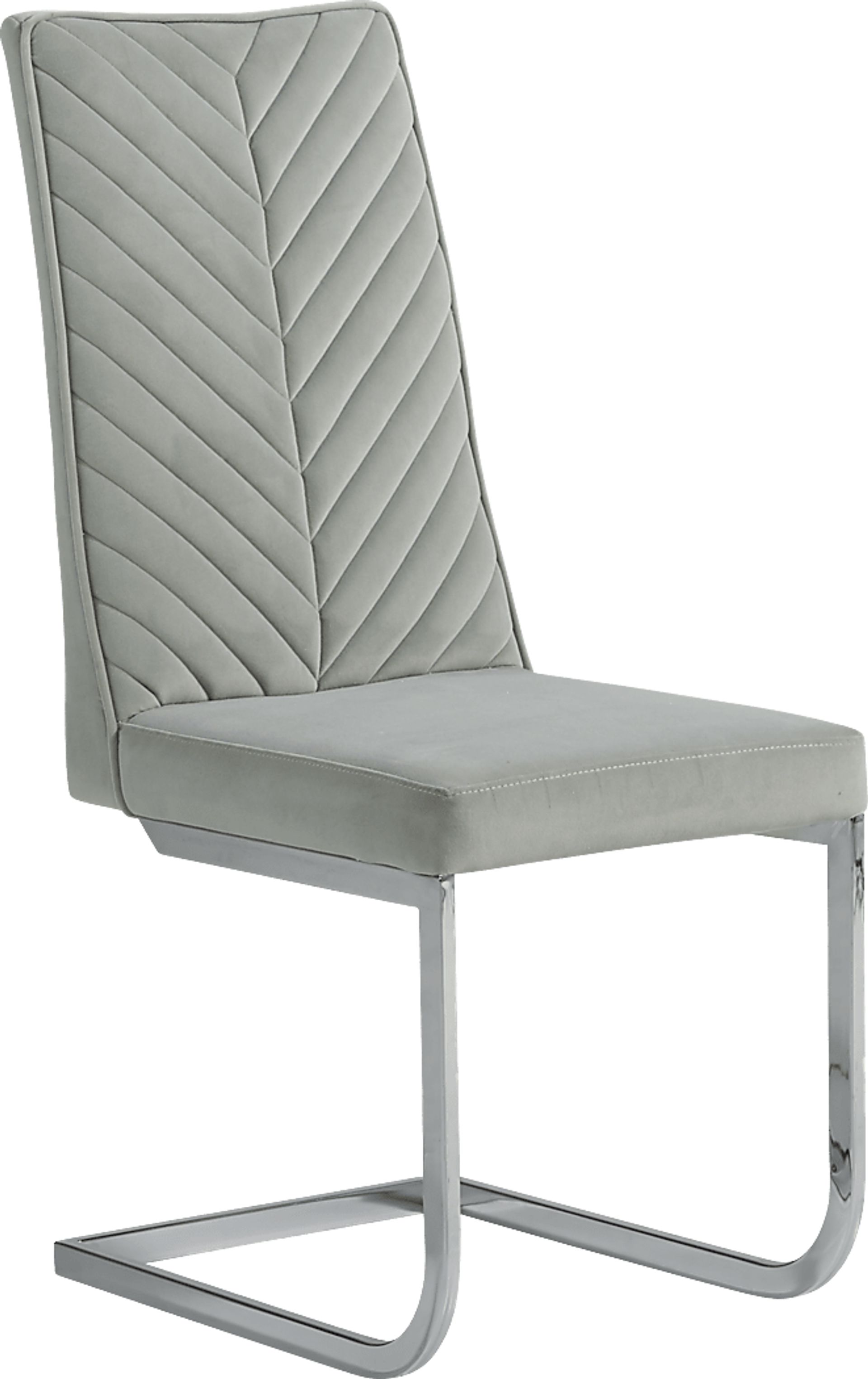 Satisfy your appetite for sleek seating with the Waycroft side chair. This contemporary dining chair is upholstered in neutral gray velvet. The channeled back adds visual appeal, while the chrome finished base provides support.