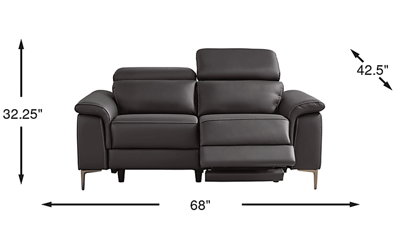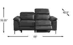 The peak of contemporary style and relaxation is closer than ever when the Weatherford Park reclining loveseat comes home. This inspired seat features a versatile black fabric, all-around padding, and nuanced detailing like plush wedge arms, poised metal legs and top-stitched seams. This piece also features dual power reclining, with powered headrests and footrests independently adjustable at the push of a button for ultimate comfort. An included USB port keeps convenient charging close at hand. Upholstery: 100% Polyurethane.
