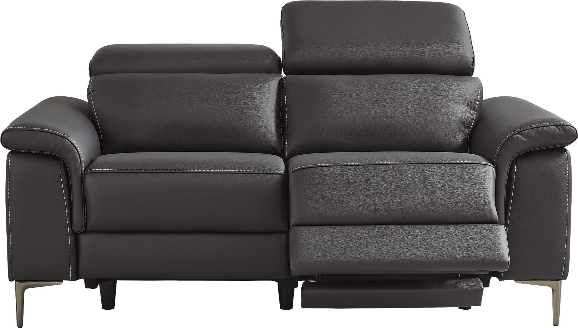The peak of contemporary style and relaxation is closer than ever when the Weatherford Park reclining loveseat comes home. This inspired seat features a versatile black fabric, all-around padding, and nuanced detailing like plush wedge arms, poised metal legs and top-stitched seams. This piece also features dual power reclining, with powered headrests and footrests independently adjustable at the push of a button for ultimate comfort. An included USB port keeps convenient charging close at hand. Upholstery: 100% Polyurethane.