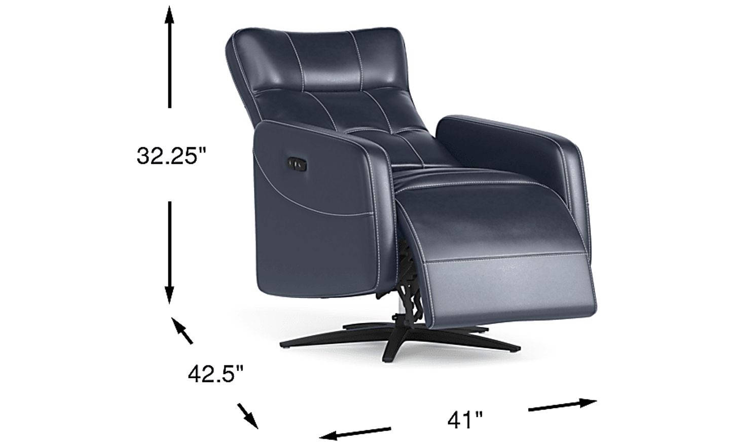 The peak of contemporary style and relaxation is closer than ever when the Weatherford Park recliner comes home. This inspired seat features a versatile blue fabric, all-around padding, and nuanced detailing like plush wedge arms, poised metal legs and top-stitched seams. This piece also features power reclining, with the footrest adjustable at the push of a button and a ratchet-style headrest for ultimate comfort. An included USB port keeps convenient charging close at hand. Upholstery: 100% polyester.
