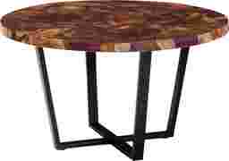 The beauty of the natural world takes shape in refreshing form through the Webfruit brown round cocktail table. This bohemian piece consists of a solid teak wood frame tactfully mixed with colored resin for a vibrant display. The live edge design augmented with crystalline structures creates an eye-catching look with the round tabletop adeptly anchors a variety of layouts. The Webfruit will arrive fully assembled and showcases the unique grain and texture of individual wood, resulting in no two pieces being exactly alike. Enriched with earthy flair, this table is an outstanding centerpiece.