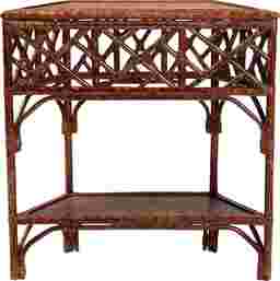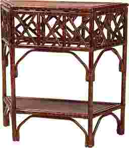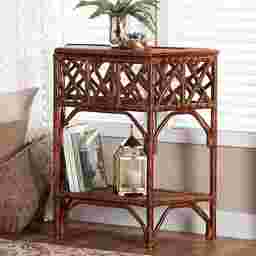 Classic Asian artistry thrives through the beautiful Webwayt dark brown console table. This bohemian piece is handcrafted from sustainably sourced natural rattan. The woven tabletop brilliantly displays a variety of decorations while the lower shelf adeptly organizes larger items. The Webwayt will arrive fully assembled and features a lovely design through its openwork borders. Rattan is a product of nature and may have variations in areas such as, but not limited to, color, pattern, grain and texture. The hair-like strands of rattan/rattan-fiber are common due to the nature of the material.