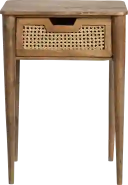 This table features a single, integrated storage drawer, making it a functional "drop zone" for remotes, charging cables, or bedside essentials. The drawer is accented with a woven cane detail, providing a textural contrast that complements coastal and minimalist decor styles while keeping daily clutter out of sight.