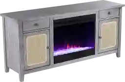 Warm up your modern farmhouse design with the Welford I fireplace and media stand. Shimmering faux crystal adds ambiance with flickering LED flames, alternating colors, and lifelike embers. Create a cozy space to host the big game or binge your favorite shows with this fireplace entertainment center in your living area. Customer assembly is required.