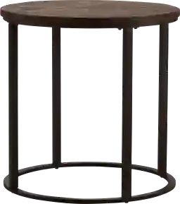 Add rustic flair to your everyday space with this Welltown round end table. Reclaimed wood planks construct a sunscape-patterned tabletop above an open, black frame, crafting a one-of-a-kind industrial accent. Slide this sustainable side table next to your sofa in your living room or open concept living space, or place alongside your favorite comfy chair to construct a cozy reading nook. Customer assembly is required.