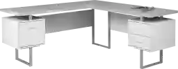 While this desk offers a large surface, its sleek contemporary profile and bright white finish help maintain an airy, open feel in smaller rooms. By utilizing a corner, this L-shaped model turns an underused area into a highly functional hub, making it an excellent choice for urban professionals who need a full-scale office setup in a limited living area.