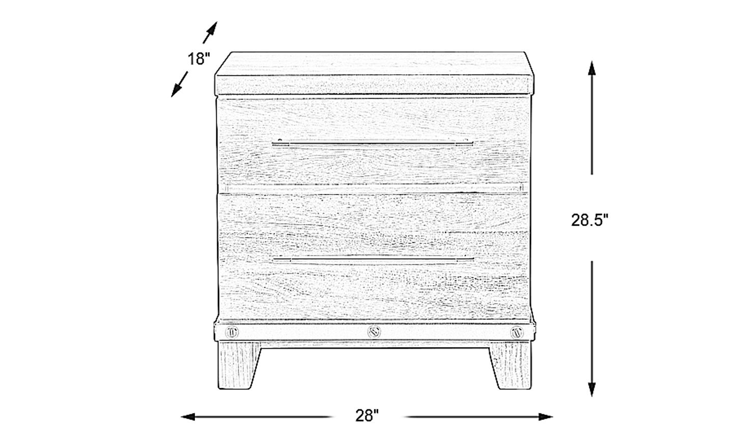 A rustic industrial companion to your bed, the West Hills nightstand offer storage and style in one chic package. Crafted of wood solids and acacia veneers in a warm brown finish, this useful piece boasts two drawers in two sizes, each utilizing sturdy English dovetail construction and adorned with a metal capped dowel pull. The faux concrete top and metal accents with grommet detailing offers an industrial cool touch.