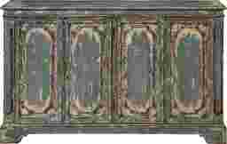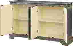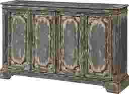 Antique-inspired, the Wester Road credenza offers chic, rustic style. Crafted of ash veneers, this piece features a charming hydra blue finish. Natural wood tones are revealed through the distressed finish, which lends this credenza a timeless look. Perfect for storage, its four doors open up to shelved compartment space.