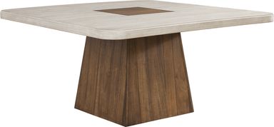 An inviting hub where conversation is intimate and connection flows freely, the Westham dining table pairs boldness with simplicity in an expression of pure refinement. A square tabletop in a cream finish is anchored by a panel of dark brown in the center, the perfect accent to tie in the commanding pedestal base below.