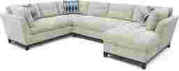 Warm familiarity and a cozy contemporary look give the Weston sectional a relaxed spirit that appeals to both the sense of comfort and style. Ash gray chenille sets the mood with touchable softness, accentuated with top-stitched seams and biscuit tufting throughout and tied together with a refined base in a dark brown finish. Flared arms cradle bolster pillows and coordinating accent pillows for adjustable comfort that makes it all feel like home. Upholstery: 100% Polyester. Cleaning Instructions: Use water based cleaning agents or foam.