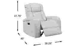 Packed with features, the Weston power recliner offers the ideal spot for watching movies and sports. Embossed Microfiber upholstery is rendered in light gray while the power headrest and footrest raise and lower for customizable comfort with the touch of a button. Premium perks include a memory switch for returning to favorite positions with ease. The power headrest provides three extra inches of back height that tilts forward to create the most comfortable position for watching television. A USB port allows for easy charging of any mobile device. Each arm has a built-in storage compartment and lighted cupholder. 80% Polyester, 20% Polyurethane