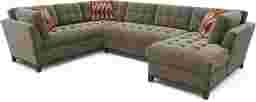 Warm familiarity and a cozy contemporary look give the Weston sectional a relaxed spirit that appeals to both the sense of comfort and style. Mink brown chenille sets the mood with touchable softness, accentuated with top-stitched seams and biscuit tufting throughout and tied together with a refined base in a dark brown finish. Flared arms cradle bolster pillows and coordinating accent pillows for adjustable comfort that makes it all feel like home. Upholstery: 100% Polyester. Cleaning Instructions: Use water based cleaning agents or foam.