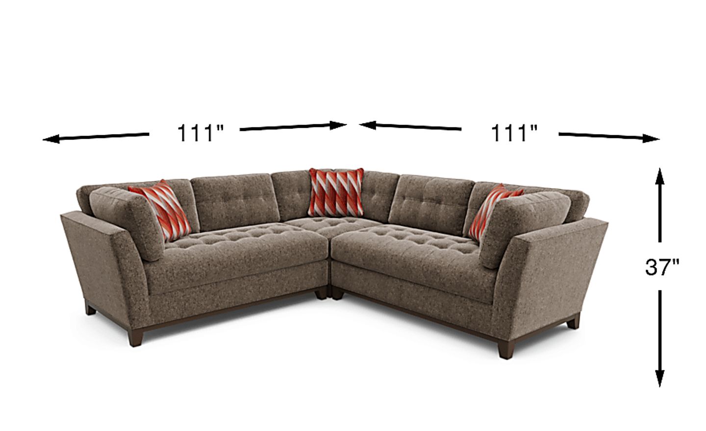 While sectionals are often perceived as bulky, this model's 111-inch footprint is designed to maximize seating without a massive footprint. Its flared arms and 37-inch height provide a more open, airy feel than heavy, blocky designs. To ensure it fits your space, our experts suggest using painter's tape to mark a 9.25' x 9.25' square on your floor; this allows you to visualize the walkway clearance before delivery.