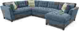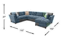 Warm familiarity and a cozy contemporary look give the Weston sectional a relaxed spirit that appeals to both the sense of comfort and style. Navy blue chenille sets the mood with touchable softness, accentuated with top-stitched seams and biscuit tufting throughout and tied together with a refined base in a dark brown finish. Flared arms cradle bolster pillows and coordinating accent pillows for adjustable comfort that makes it all feel like home. Upholstery: 100% Polyester. Cleaning Instructions: Use water based cleaning agents or foam.