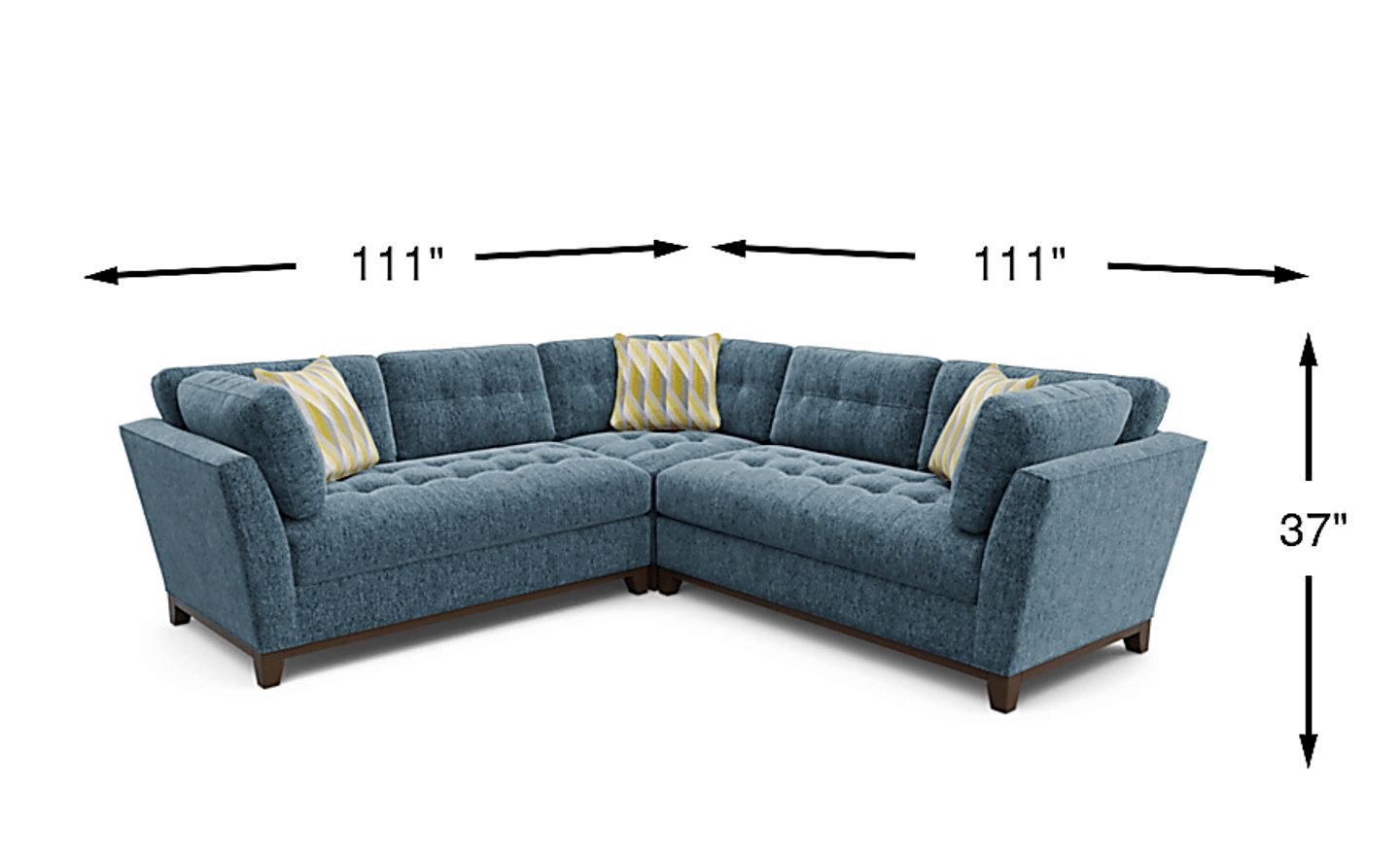 Warm familiarity and a cozy contemporary look give the Weston sectional a relaxed spirit that appeals to both the sense of comfort and style. Navy blue chenille sets the mood with touchable softness, accentuated with top-stitched seams and biscuit tufting throughout and tied together with a refined base in a dark brown finish. Flared arms cradle bolster pillows and coordinating accent pillows for adjustable comfort that makes it all feel like home. LAF loveseat, corner wedge, RAF loveseat. Upholstery: 100% Polyester. Cleaning Instructions: Use water-based cleaning agents or foam.