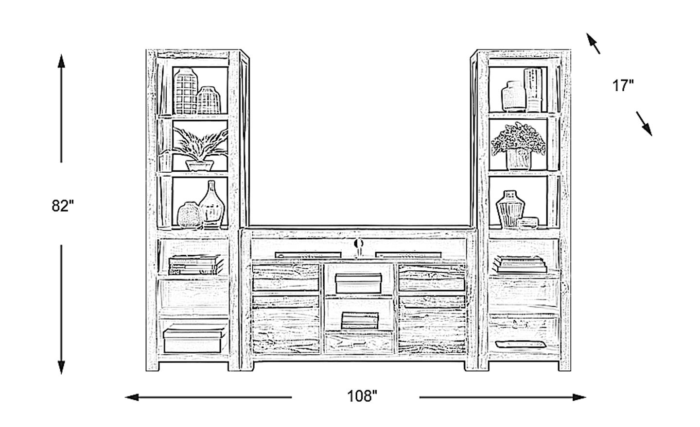 With a total width of 108 inches (9 feet), this is a substantial piece of furniture that serves as a room’s primary focal point. It is ideally suited for spacious living rooms, suburban family rooms, or open-concept floor plans where it can anchor a large wall. Its 17-inch depth is intentionally slim to ensure that while it provides significant vertical storage and presence, it does not infringe too far into your floor space or walkway.