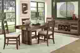Create a timeless space that feels as natural as it is refined with the Westover Hills II collection by Cindy Crawford Home. Highlighted by breathtaking pine wood veneer work, this collection's rectangle dining table offers touches of rustic styling with distressed details and exposed knots enhanced by contrasting hues of brown. The generous surface tops an illustrious plinth panel base to create a distinctive final look.