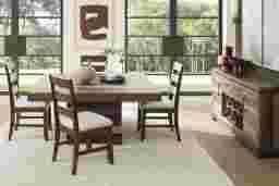Create a timeless space that feels as natural as it is refined with the Westover Hills II collection by Cindy Crawford Home. Highlighted by breathtaking pine wood veneer work, this collection's square dining table offers touches of rustic styling with distressed details and exposed knots enhanced by contrasting hues of brown. The generous surface tops an illustrious pedestal base to create a distinctive final look.