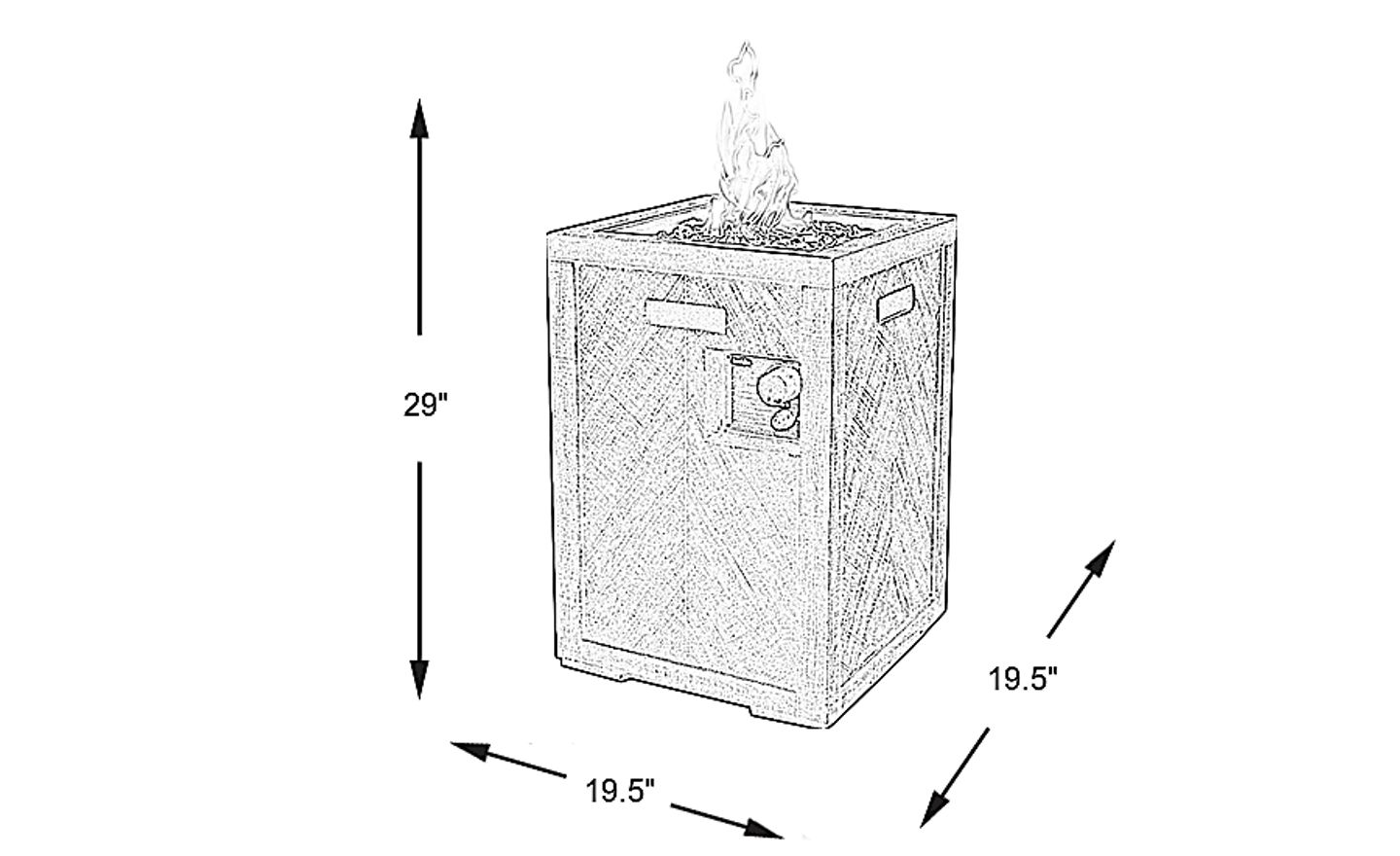Sized just right the gray Westville fire pit is a wonderful companion for your outdoor seating. The 19.5-inch square column is made of GFRC (Glass Fiber Reinforced Concreate) for durability. Reflective fire glass, included, adds an eye catching touch. This fire pit accommodates a standard propane tank with 32,000 BTU (not included) and is activated with a push-button igniter. An included lid can protect your fire pit when not in use.