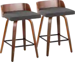 These stools are constructed with tapered bent wood legs that provide a stable, mid-century modern aesthetic. To safeguard high-end flooring like hardwood or luxury vinyl plank, we recommend applying heavy-duty felt pads to the base of each leg. This prevents friction and ensures that the walnut-finished wood glides smoothly without leaving scuffs or scratches.