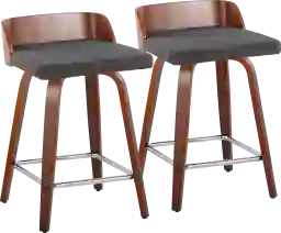 These stools are a classic example of Mid-Century Modern design. The combination of the walnut-finished bent wood legs and the curved, low-back silhouette reflects the organic shapes and functional elegance typical of that era. They serve as a sophisticated accent that can bridge the gap between retro-inspired decor and a clean, contemporary aesthetic.