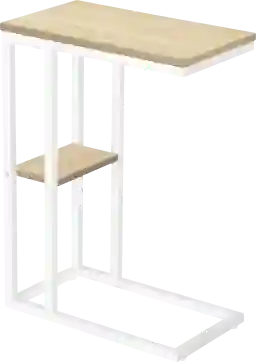 Straight lines and clean angles give this C-shaped Wewatta accent table an elegantly modern look. The rectangular tabletop in a natural wood-look finish is supported by a white metal frame with a secondary shelf underneath the table for convenient placement of smaller items. Slide this versatile end table under a sofa or chair to place snacks or mobile devices or use as a side table next to a bed. Customer assembly is required.