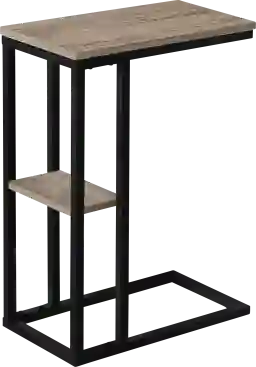 Straight lines and clean angles give this C-shaped Wewatta accent table an elegantly modern look. The rectangular tabletop in a dark taupe wood-look finish is supported by a black metal frame with a secondary shelf underneath the table for convenient placement of smaller items. Slide this versatile end table under a sofa or chair to place snacks or mobile devices or use as a side table next to a bed. Customer assembly is required.