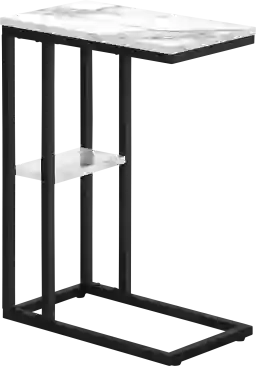 Straight lines and clean angles give this C-shaped Wewatta accent table an elegantly modern look. The rectangular tabletop in a white marble-look finish is supported by a black metal frame with a secondary shelf underneath the table for convenient placement of smaller items. Slide this versatile end table under a sofa or chair to place snacks or mobile devices or use as a side table next to a bed. Customer assembly is required.