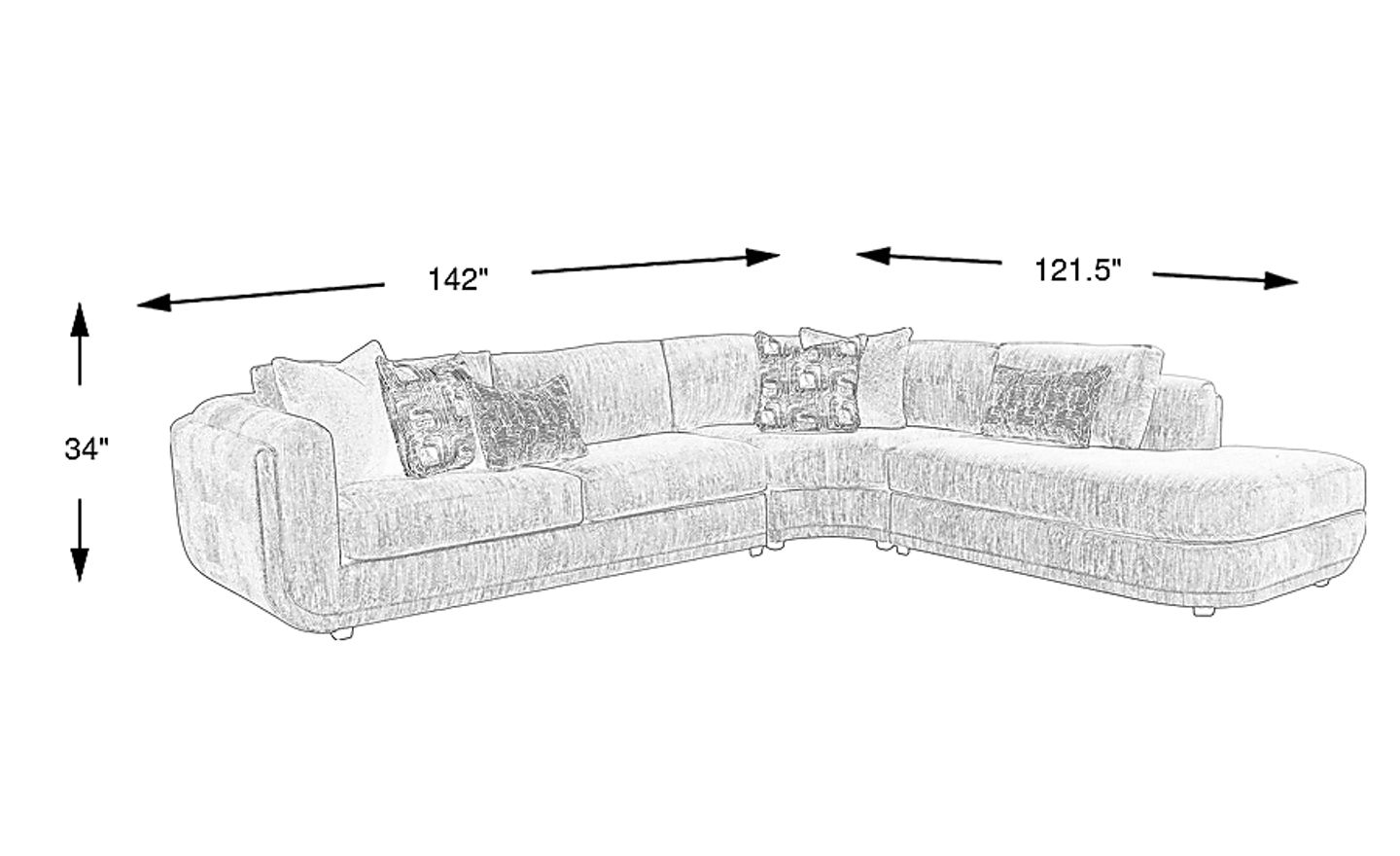 Mixing cosmopolitan flair and refined sensibility absolutely effortlessly, the Wexley sectional from Cindy Crawford Home offers utter enchantment from every angle. Upholstered with luxurious jacquard fabric, this piece features a left arm facing sofa and a right arm facing chaise that mingle in the middle to form a showstopping silhouette. Spacious and plushy, the feather blend seat cushions are complimented by the fabric's rich beige tone. Sophisticated track arms run end to end, tailoring the sectional's appearance with magnificent stand out appeal. The modern contemporary look wouldn't be complete without down blend toss pillows. Upholstery: 100% Polyester. Cleaning Instructions: Use water based cleaning agents or foam.