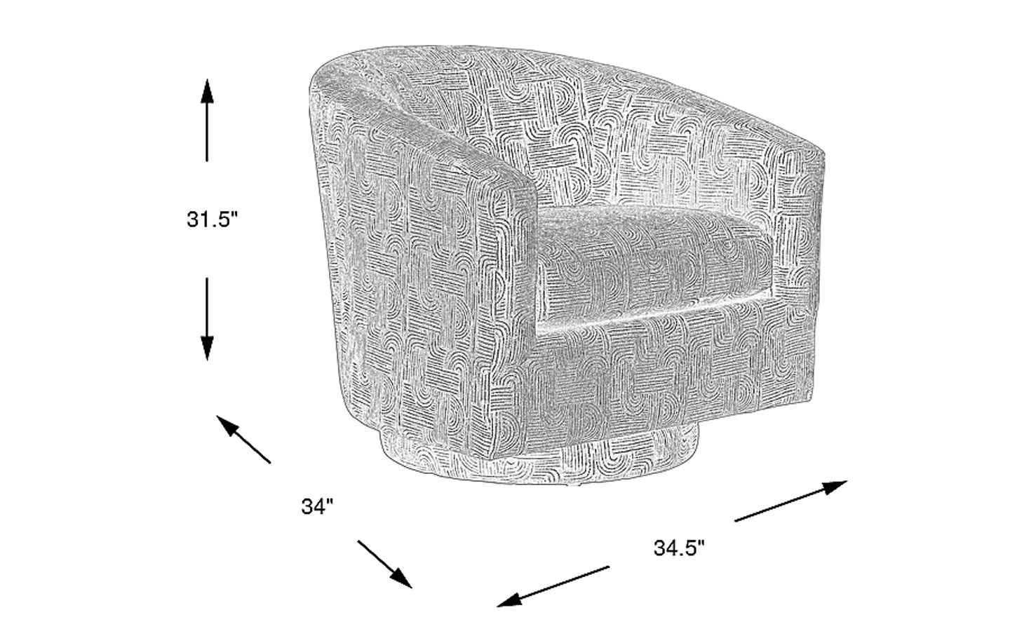 Mixing cosmopolitan flair and refined sensibility absolutely effortlessly, the Wexley swivel accent chair from Cindy Crawford Home offers utter enchantment from every angle. Featuring an eclectic modern contemporary pattern, this 360-degree swivel chair features soft fabric upholstery. Upholstery: 95% Polyester, 5% Acrylic