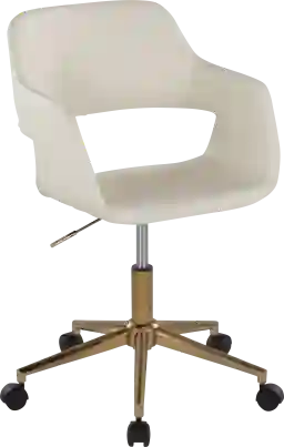 With a beautiful contemporary design, the Whisp I Cream Desk Chair features a low backrest with a slight opening, ergonomically designed to fit your body, armrests for additional comfort, and an adjustable base. Faux leather upholstered in a variety of colors, the Whisp I Cream Desk Chair will look great in any home office. Customer assembly required.