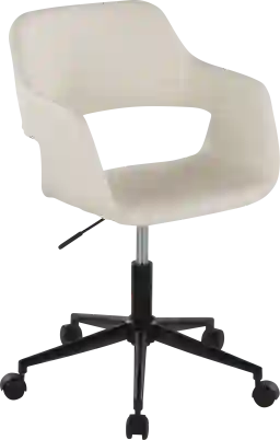 With a beautiful contemporary design, the Whisp II Cream Desk Chair features a low backrest with a slight opening, ergonomically designed to fit your body, armrests for additional comfort, and an adjustable base. Faux leather upholstered in a variety of colors, the Whisp II Cream Desk Chair will look great in any home office. Customer assembly required.